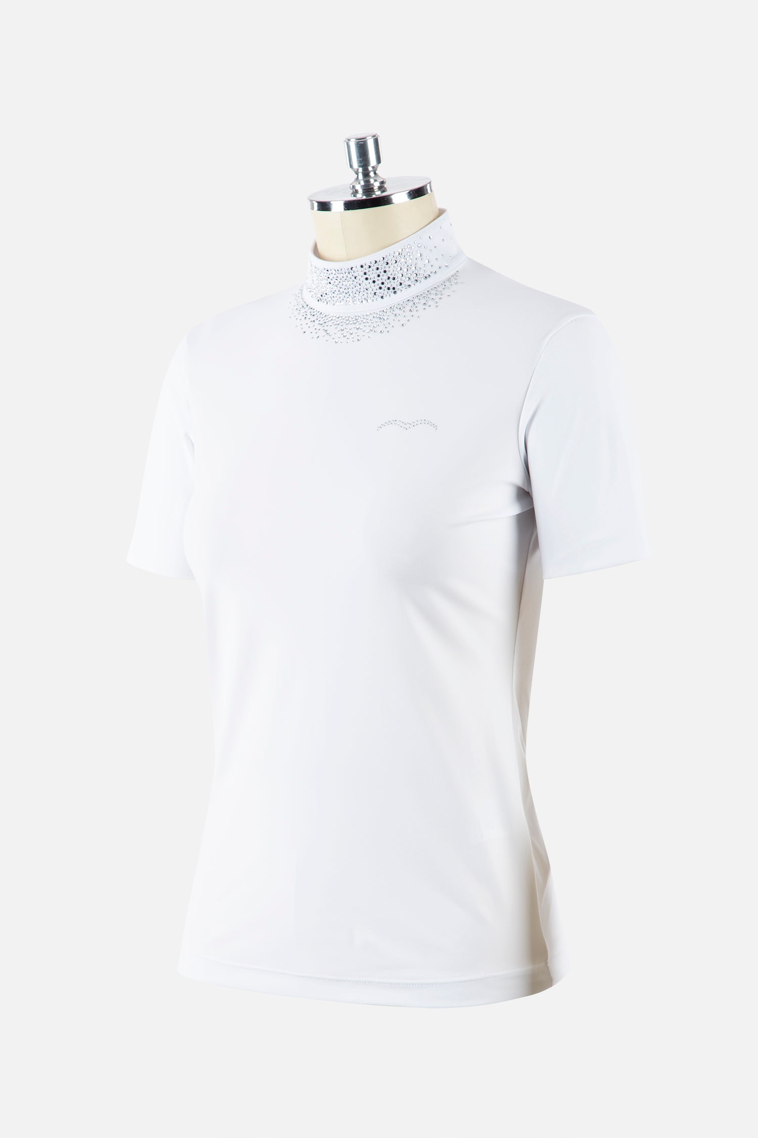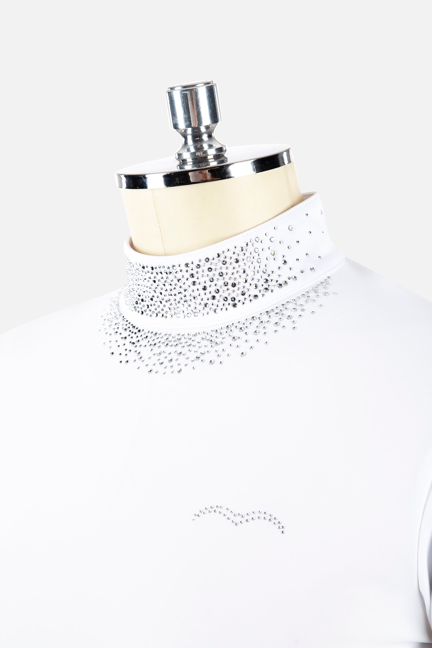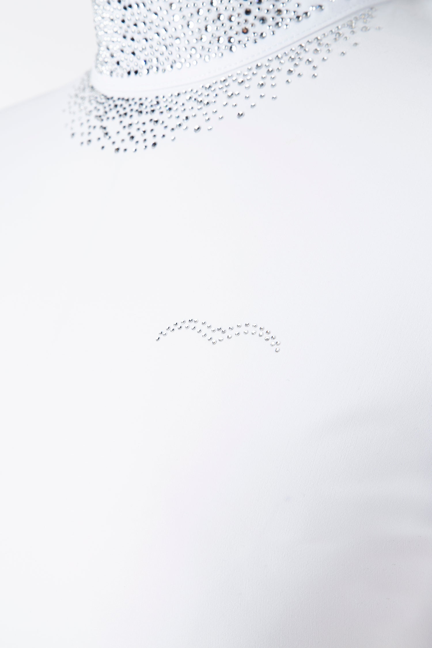 The incredibly striking rhinestone embellishment and logo add elegance, while the "Live Light" design embodies style and functionality. This is a stunningly lightweight and breathable garment.