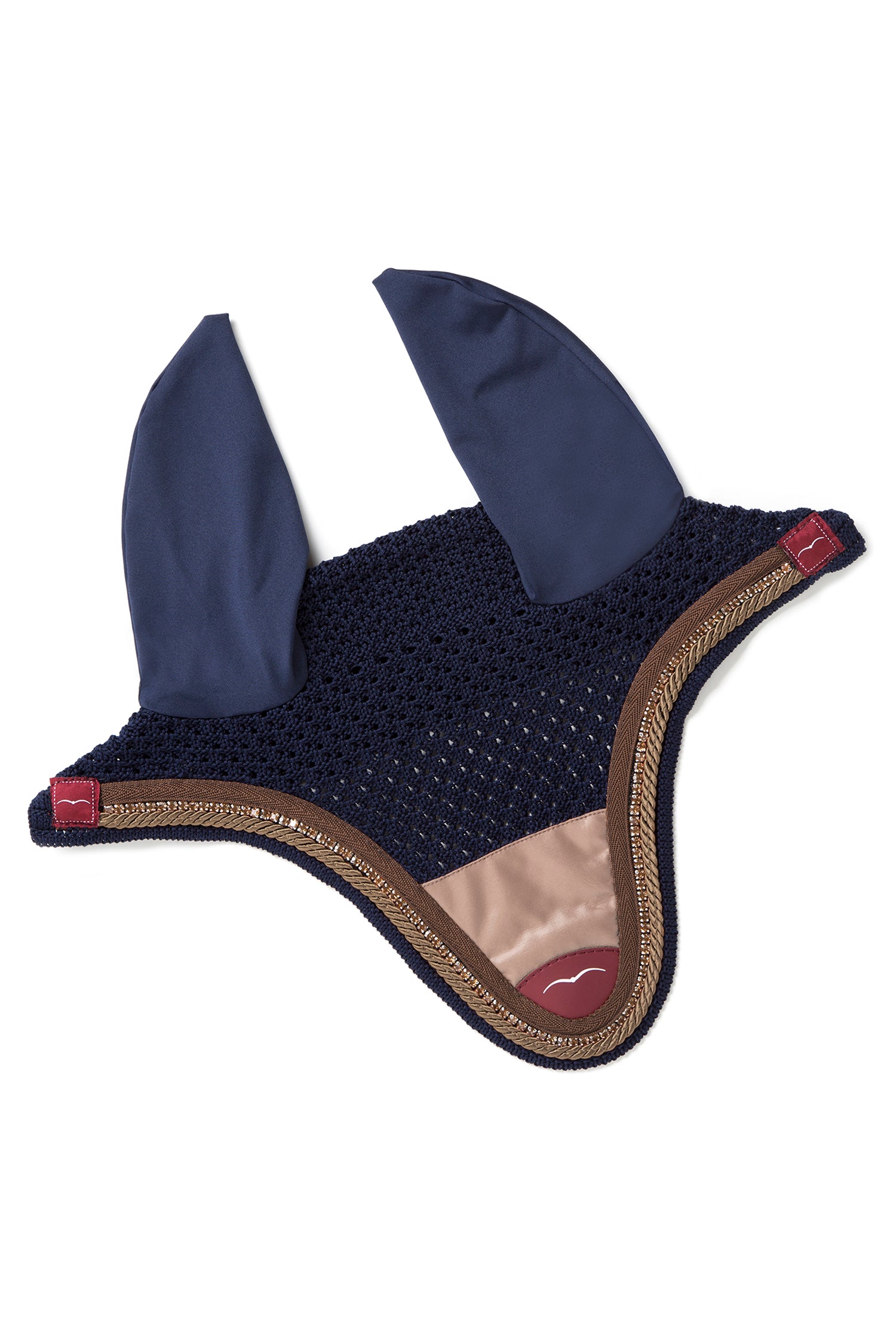 The Celdon Ear Net matches the Weldon Jumping Saddle Pad and is absolutely gorgeous. Knitted navy fabric front with the matching Calla fabric tab.
