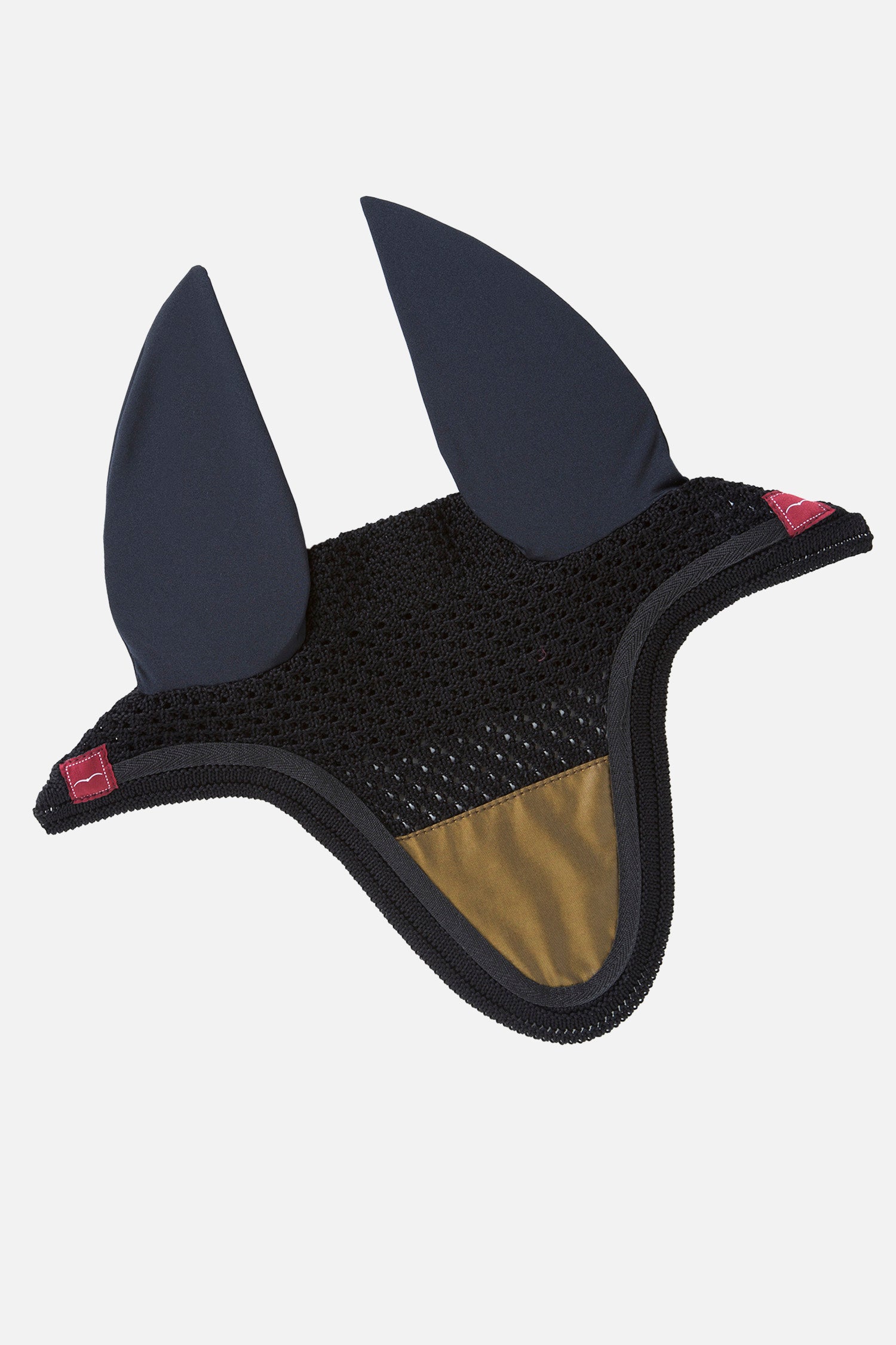 The Animo Cien Ear Net is the matching ears for the Wien Jumping Saddle Pad. Glossy matching fabric on the front of the black crocheted fabric, and elasticised cotton ears for the perfect fit.