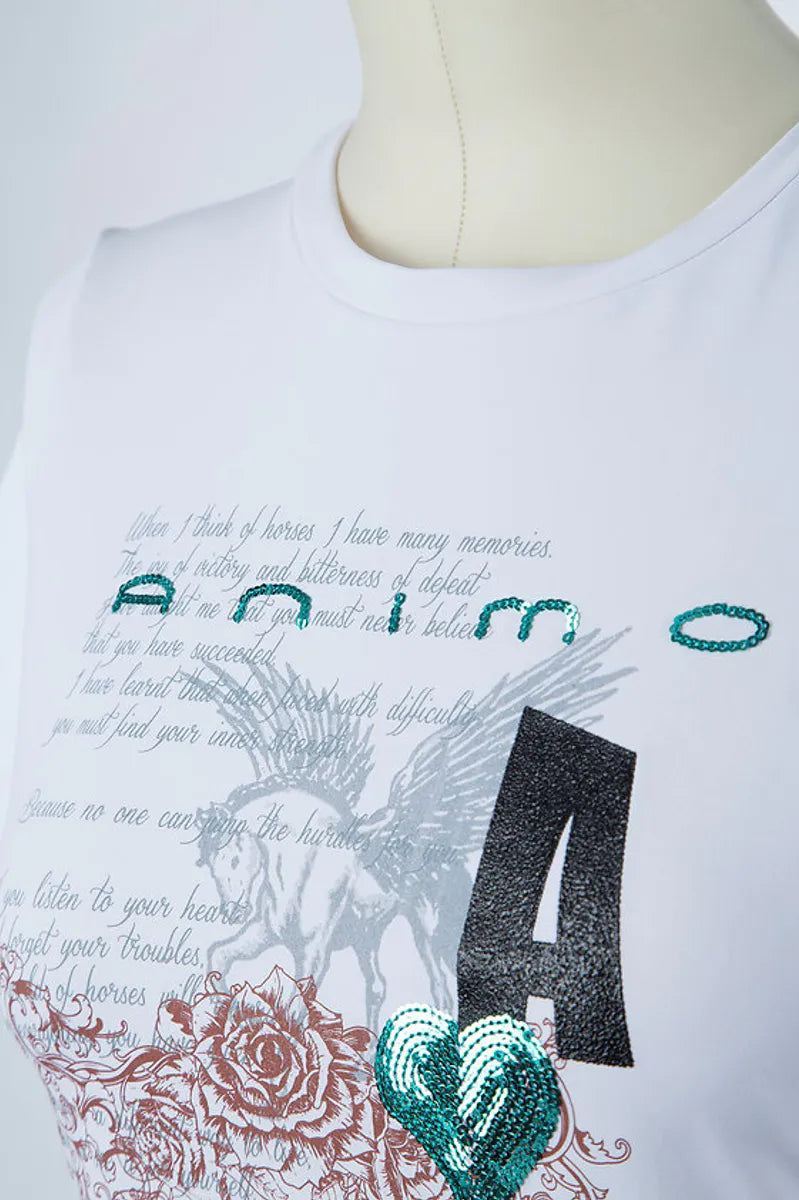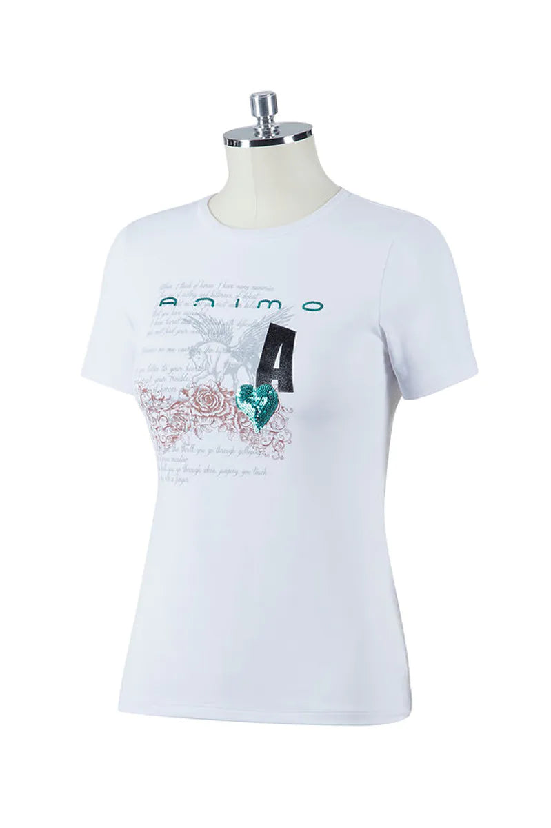 Show off your stylish side with the Animo Fulvia Ladies Tee Shirt. With its breathable design and fashionable features, contrasting prints, and delicate sequin embroidery, it's perfect for any occasion.