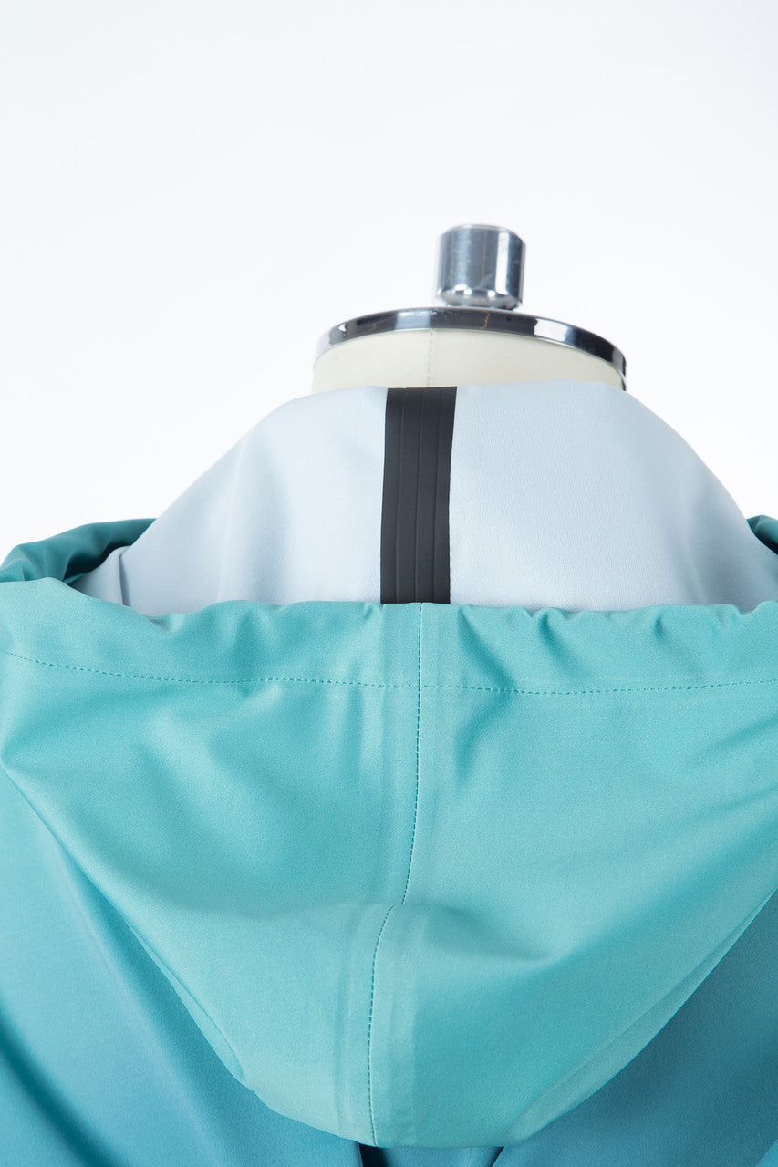 The 2-way zipper, hood, and trendy colour gradient add both style and function to this essential piece. Perfect for those in warmer climates needing an unlined rain jacket!