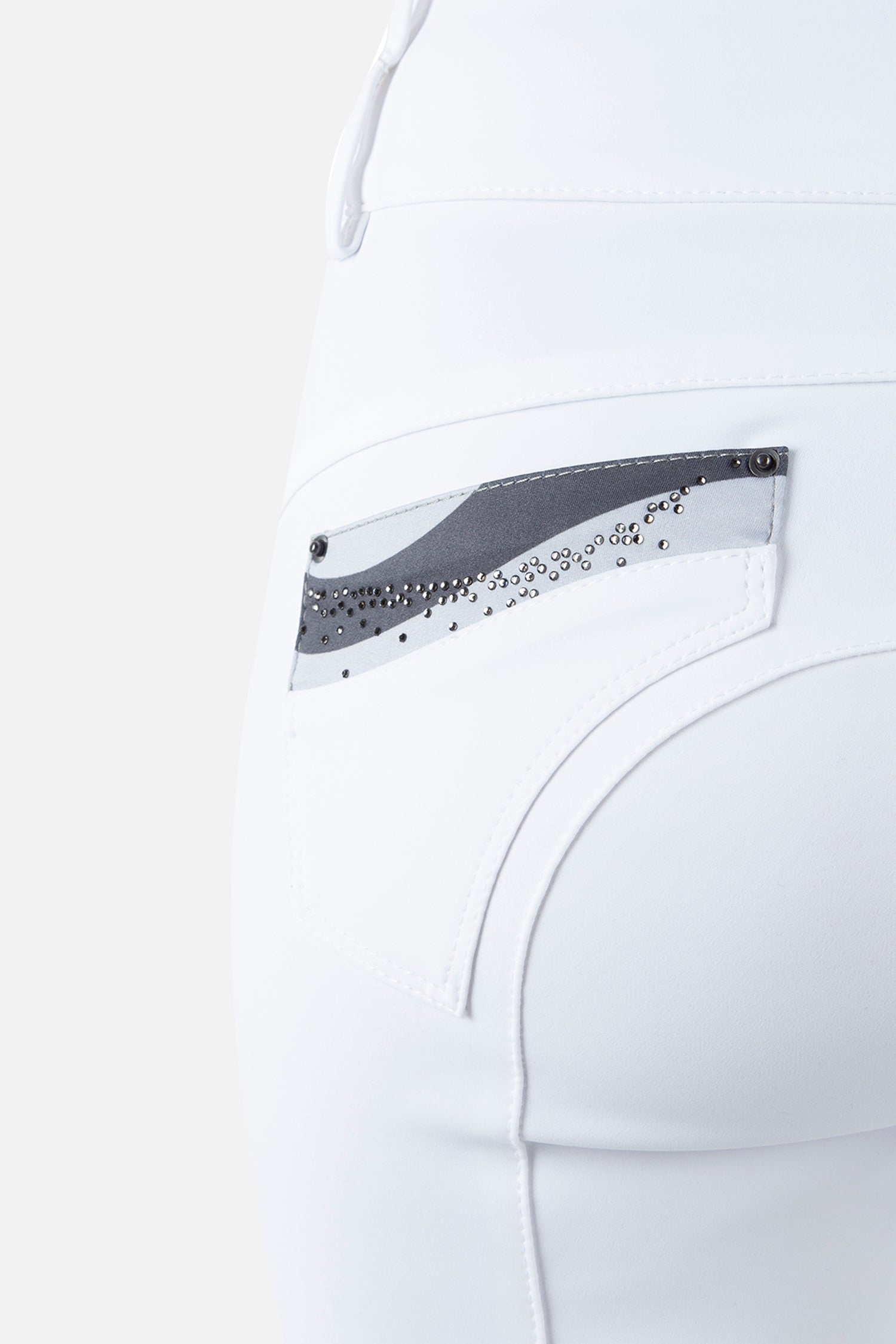 High-waisted and high-performance, the Animo Namica Breeches are built for riders who love a sculpted look with serious comfort. The stretch fabric moves with you, while the silicone knee grip offers just the right amount of stick in the saddle. Subtle logo detailing and clean lines give it that Animo edge.