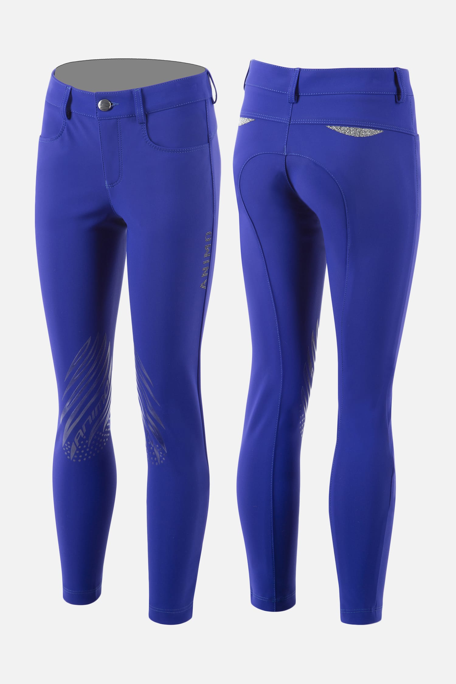 Complete with the Animo logo made of rhinestones, these breeches are both functional and stylish for young equestrians.