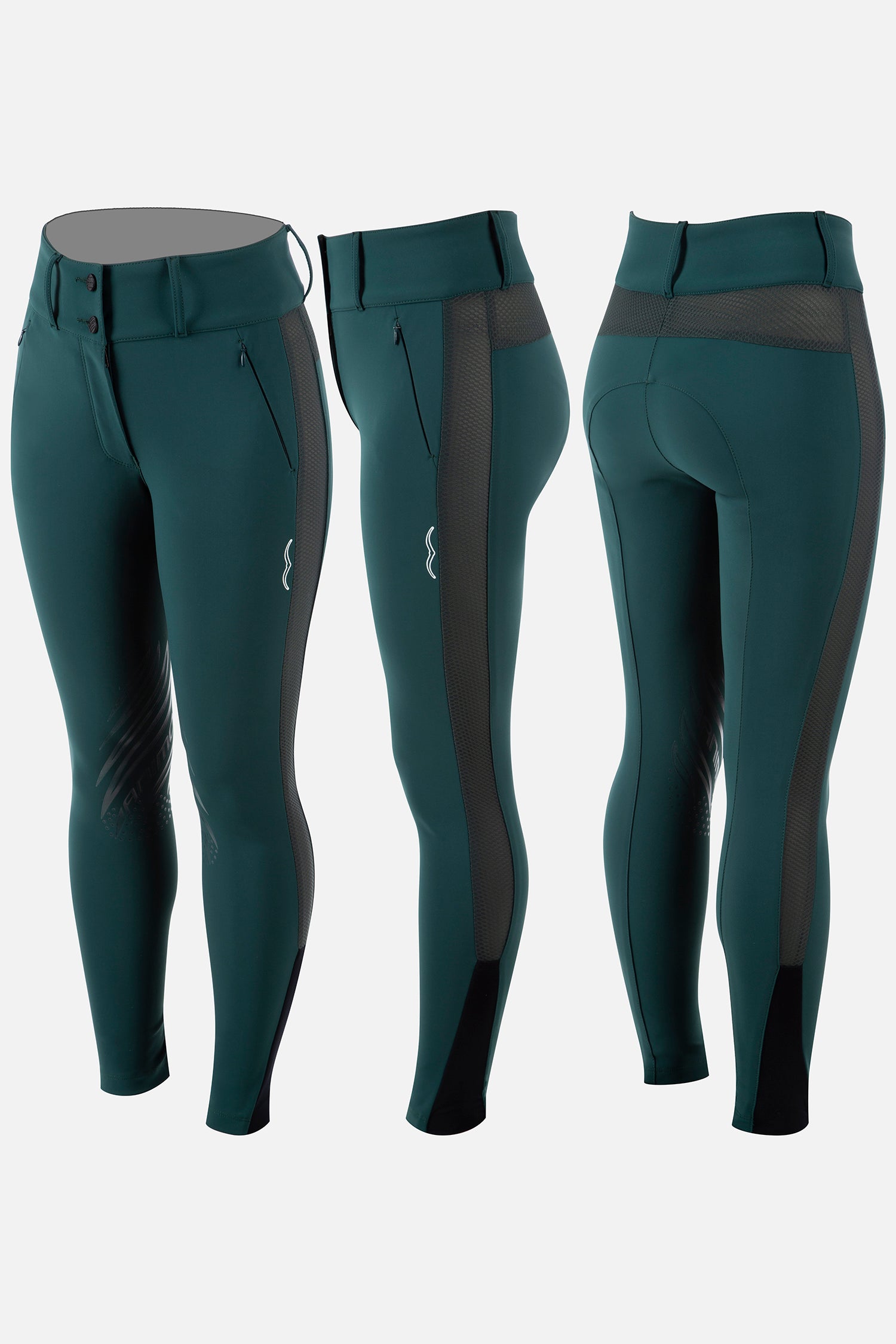 The Animo Nymphs Ladies Breeches feature the Star Mesh fabric across the back of the breeches and down the leg. Perfect for training in hot climates. They have a high waist with double button closure, and knee grip.