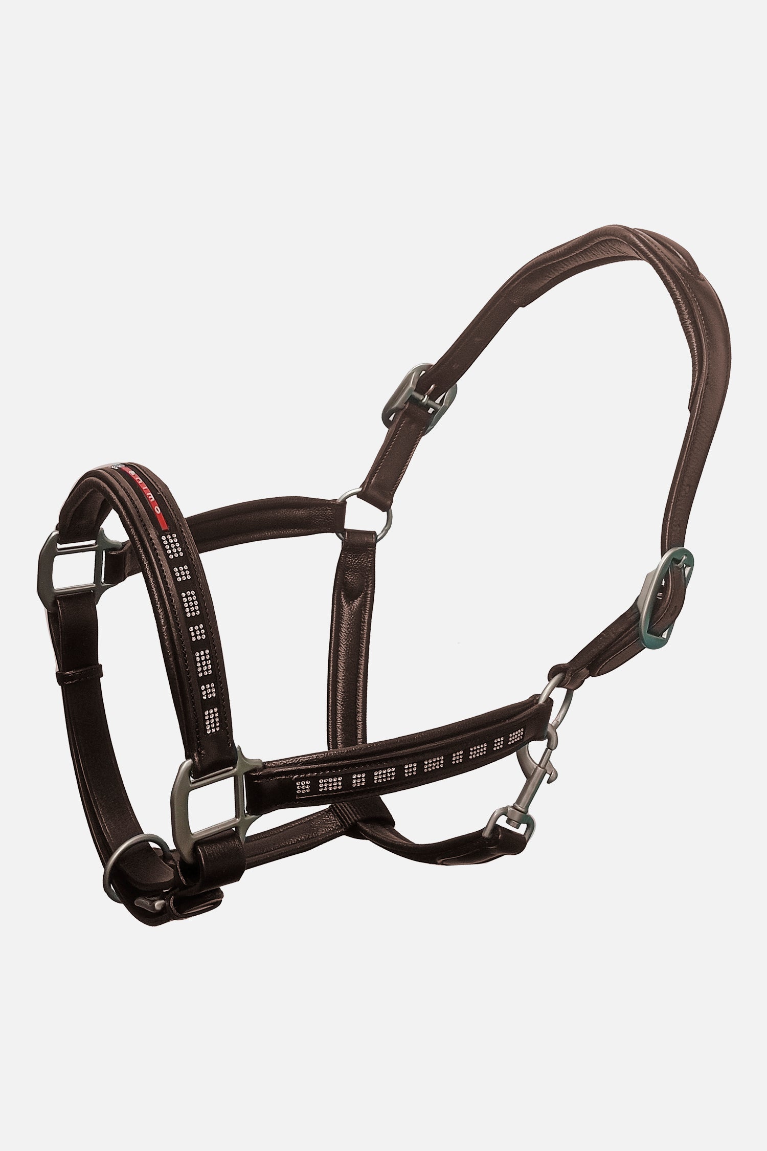 Expertly crafted with the finest leather and adorned with delicate rhinestone inserts, the Animo Unita Leather Halter adds a touch of elegance and sophistication to your horse's wardrobe.